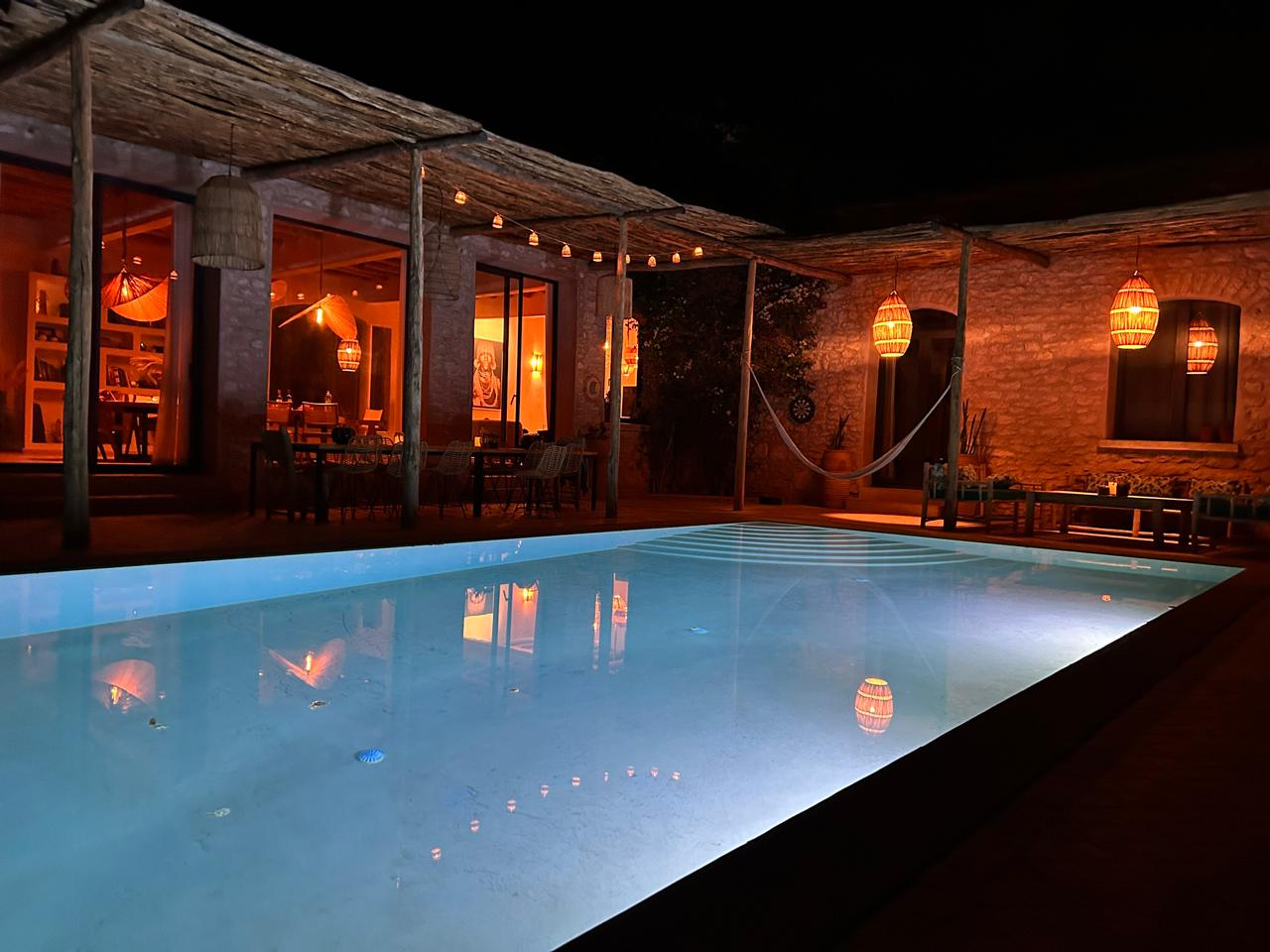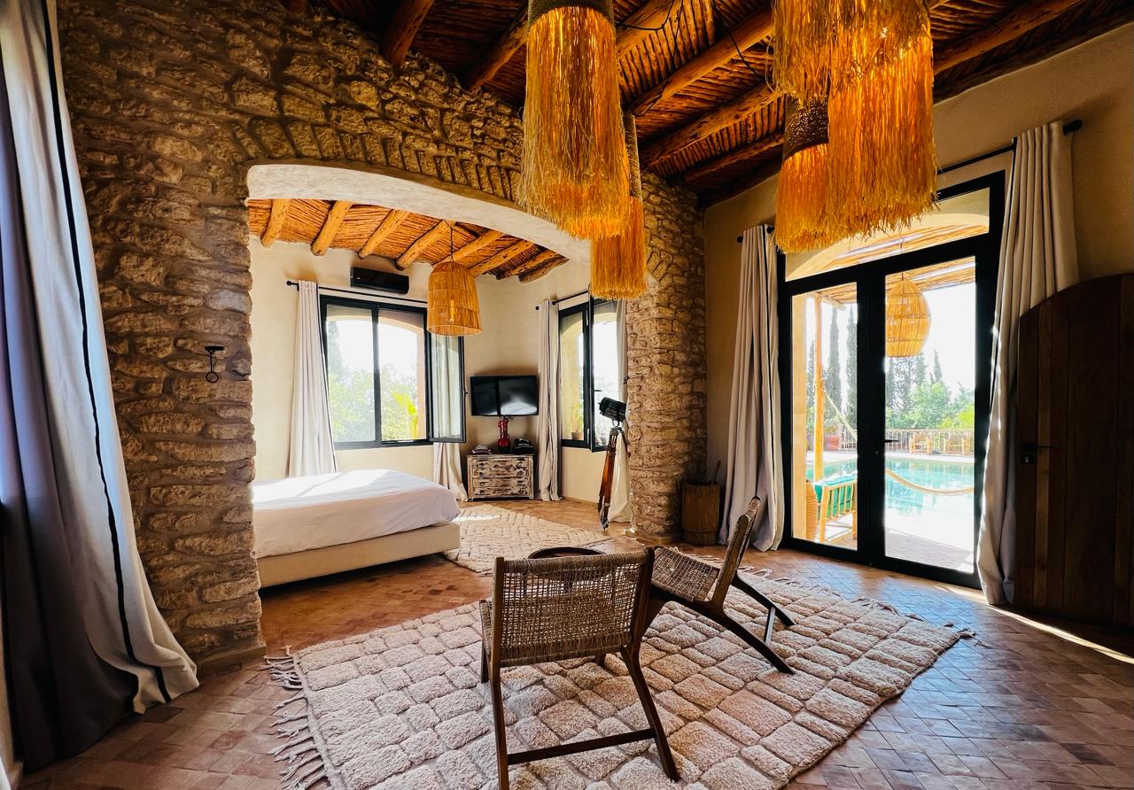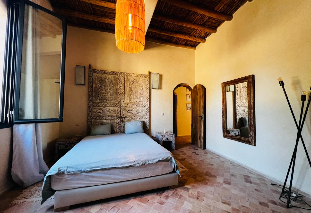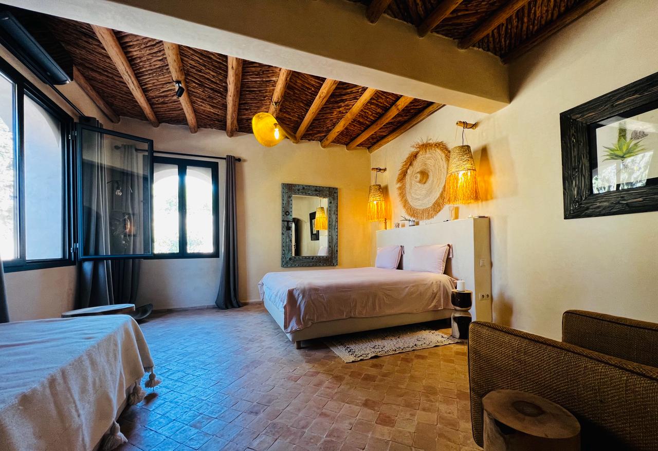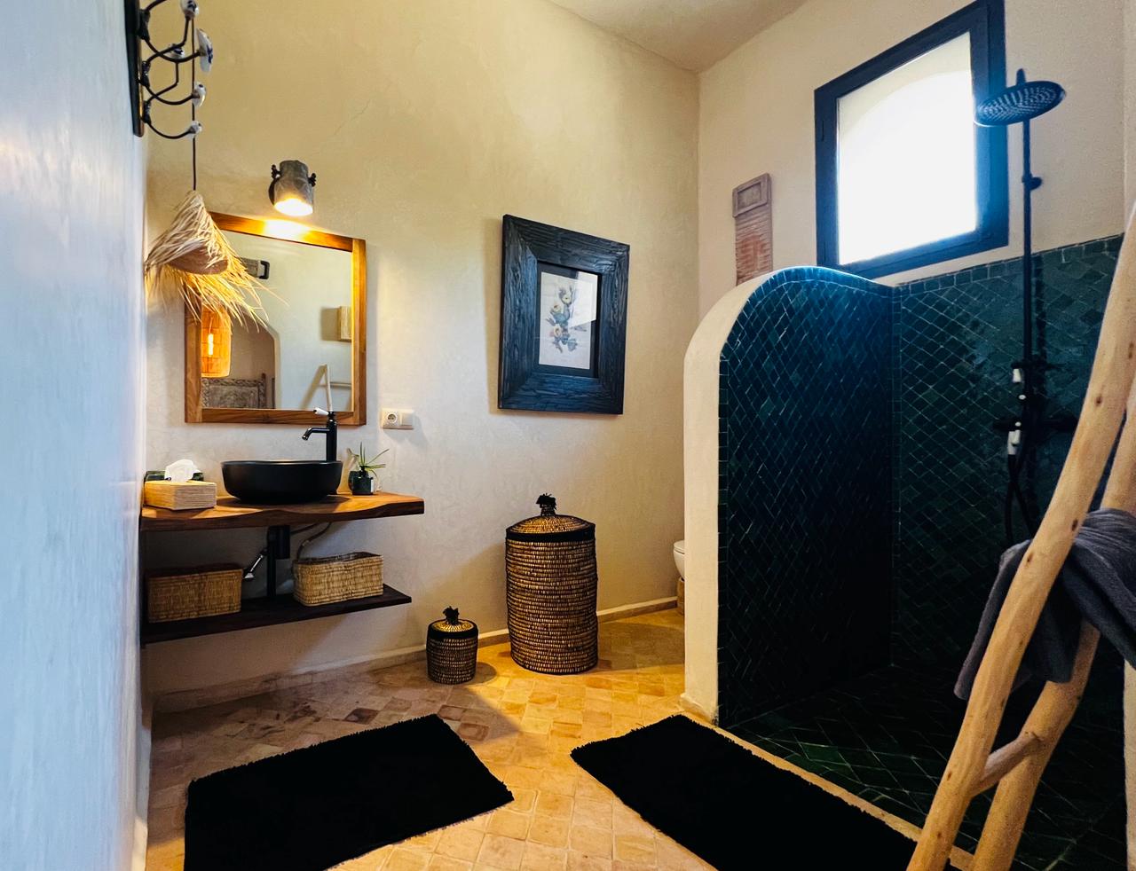 Cette propriété haut standing dispose d’une très belle maison principale de plein pied d’une surface de 280m² habitable. Façade en pierre typique de la région d’Essaouira, elle est composée d’un majestueux hall d’entrée avec sa coupole au plafond, desservant quatre belles et grandes suites avec salle de bain privative, wc, dressing intégré, de grandes baies vitrées apportant une luminosité naturelle. Dont une très belle suite parentale pouvant accéder directement à la terrasse face à la piscine.