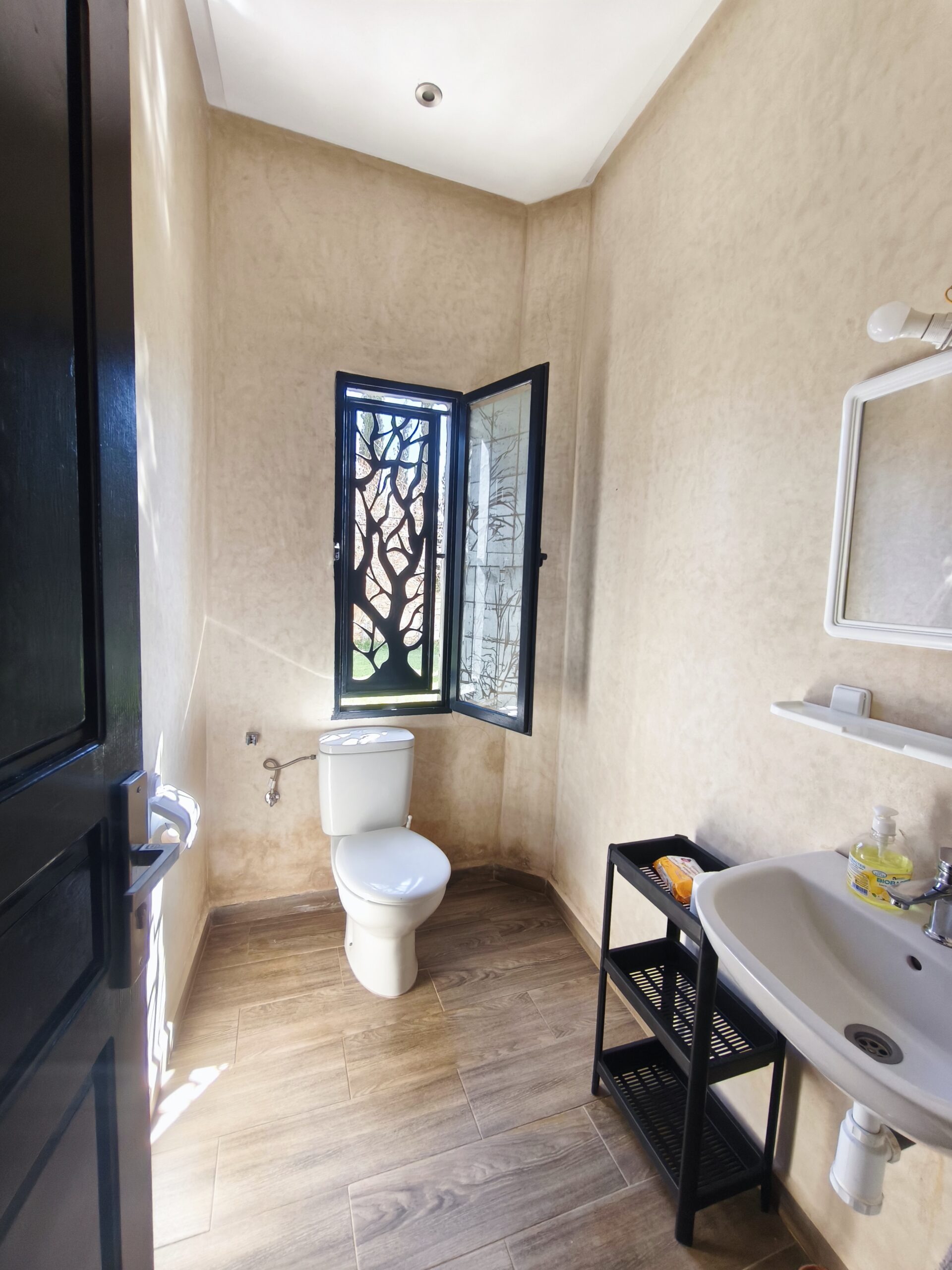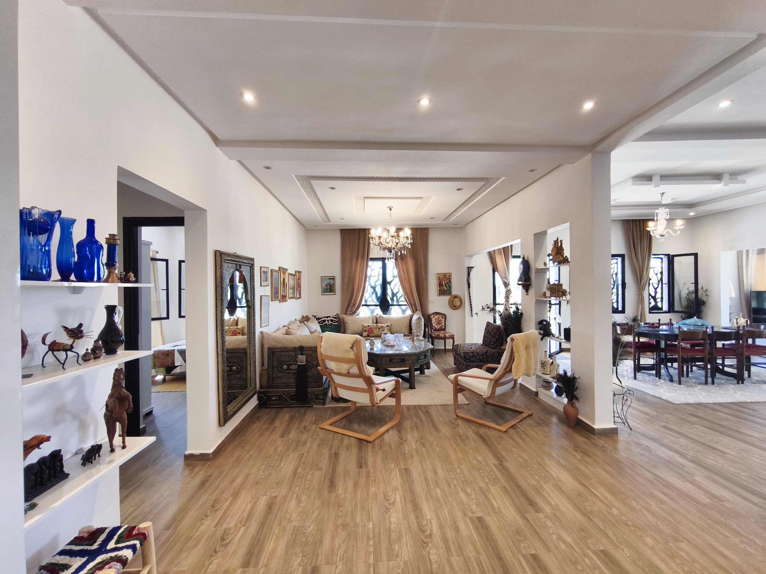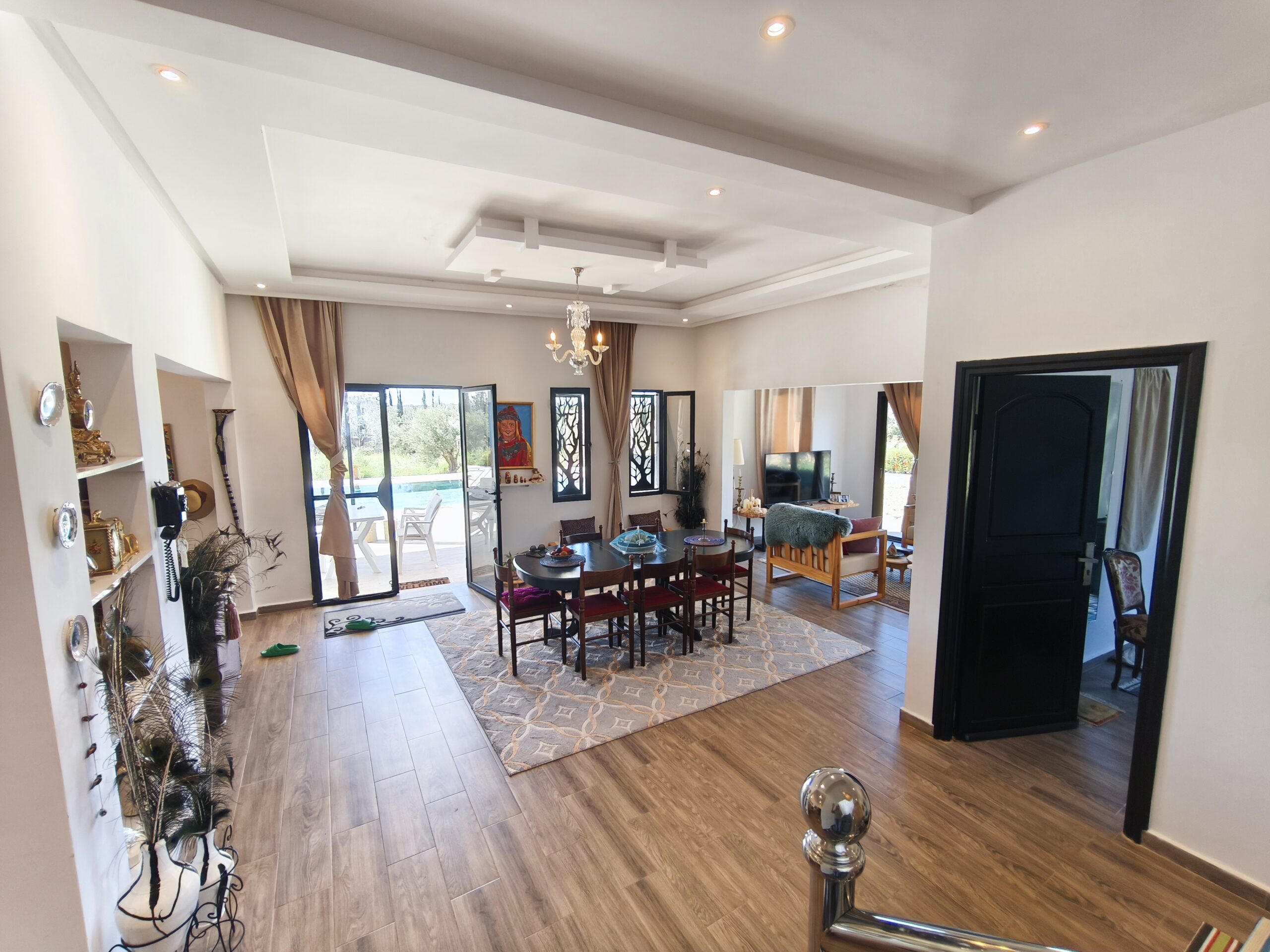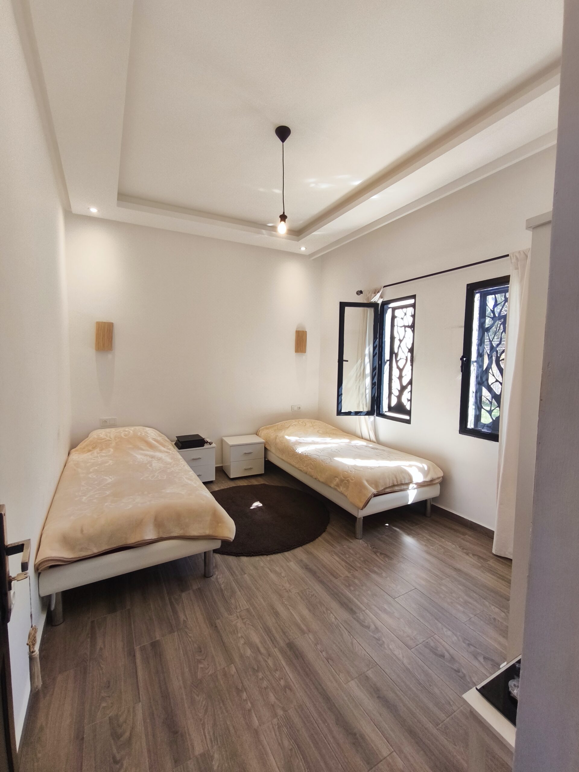 Maison en R+1, composée au rez de chaussée d’un bel espace à vivre, salon, salle à manger, cuisine équipée, arrière cuisine, hammam. Une belle chambre avec dressing et salle de bain privative, deux autres chambres avec une salle de bain commune séparée.