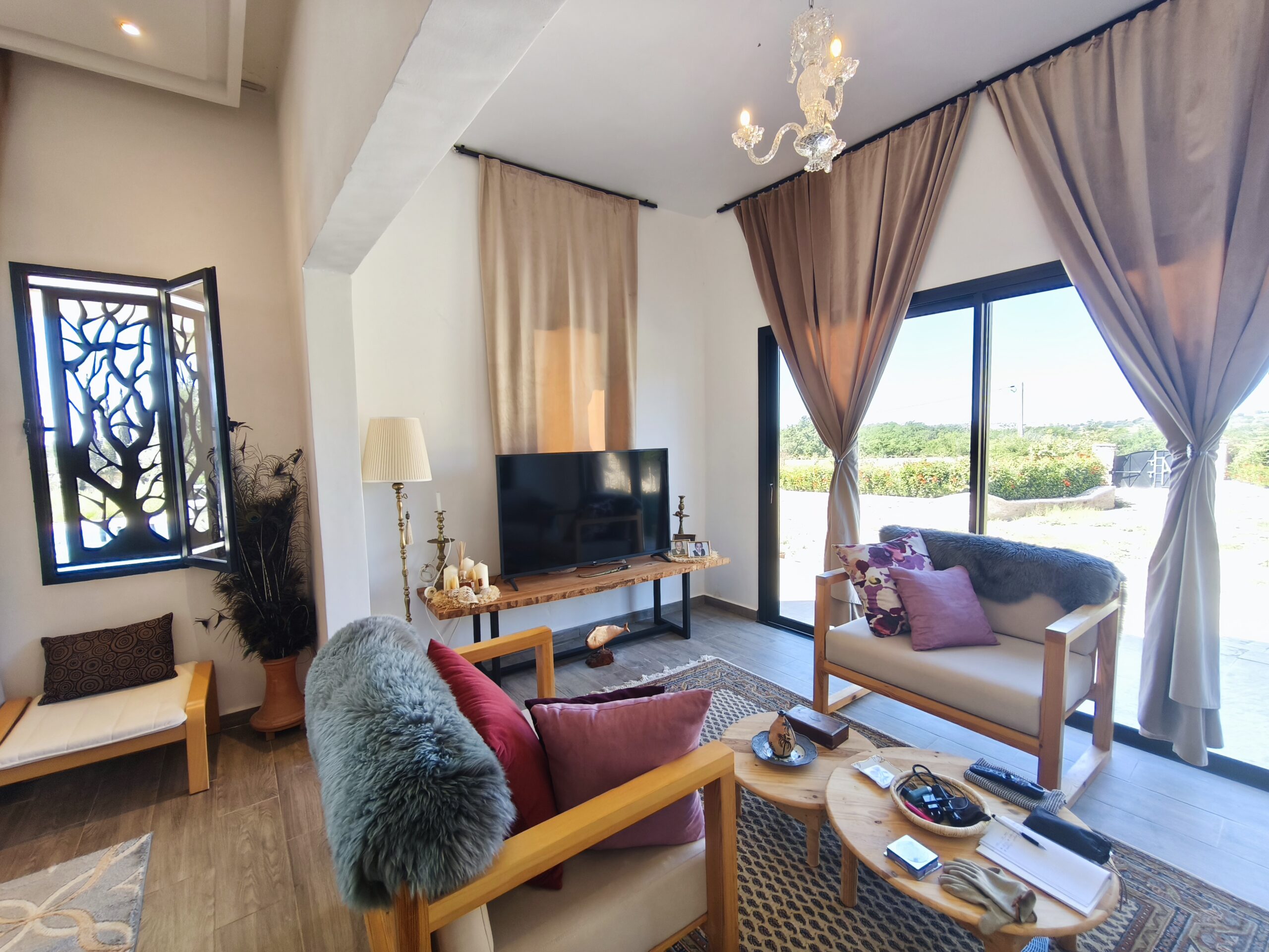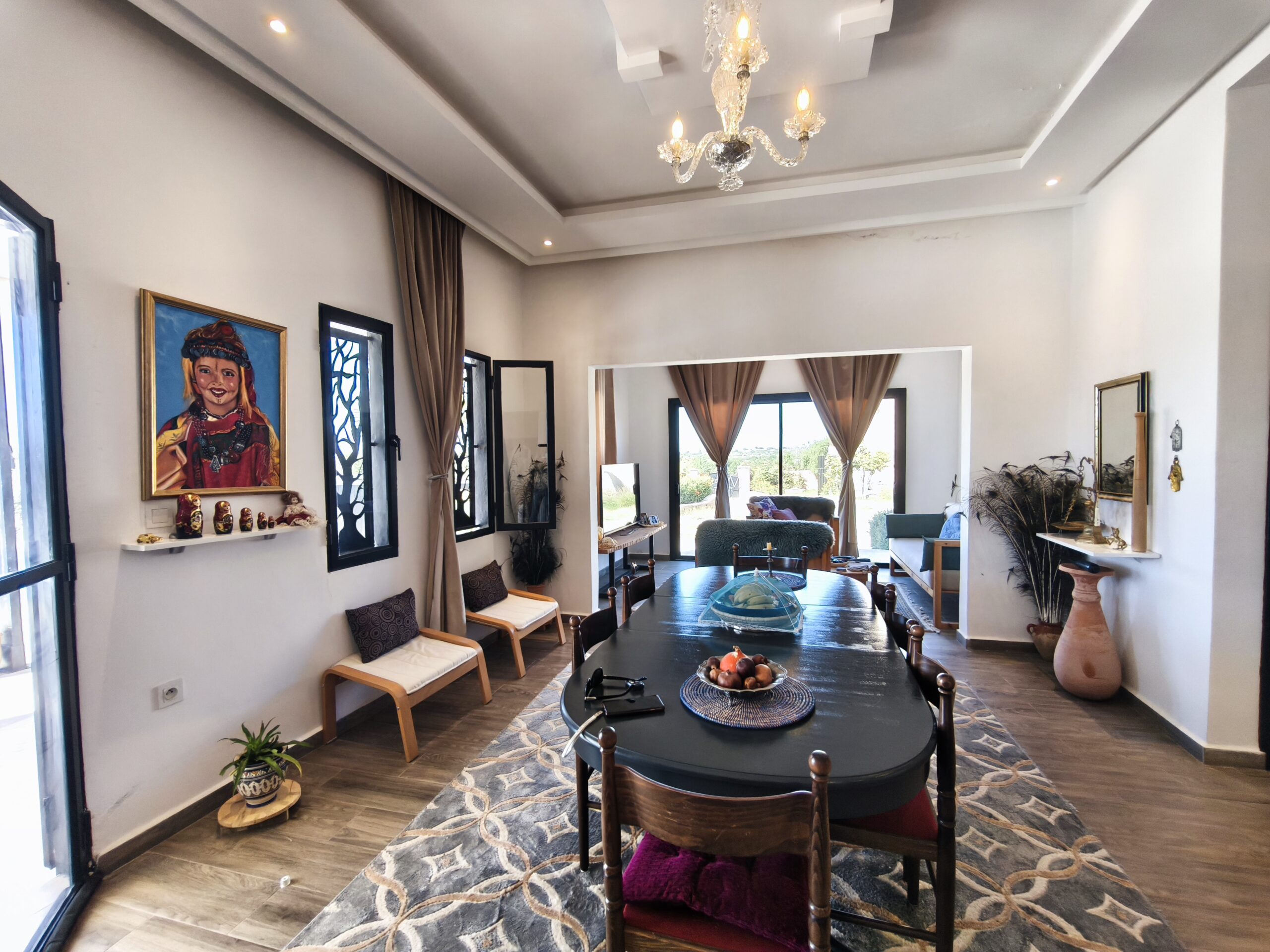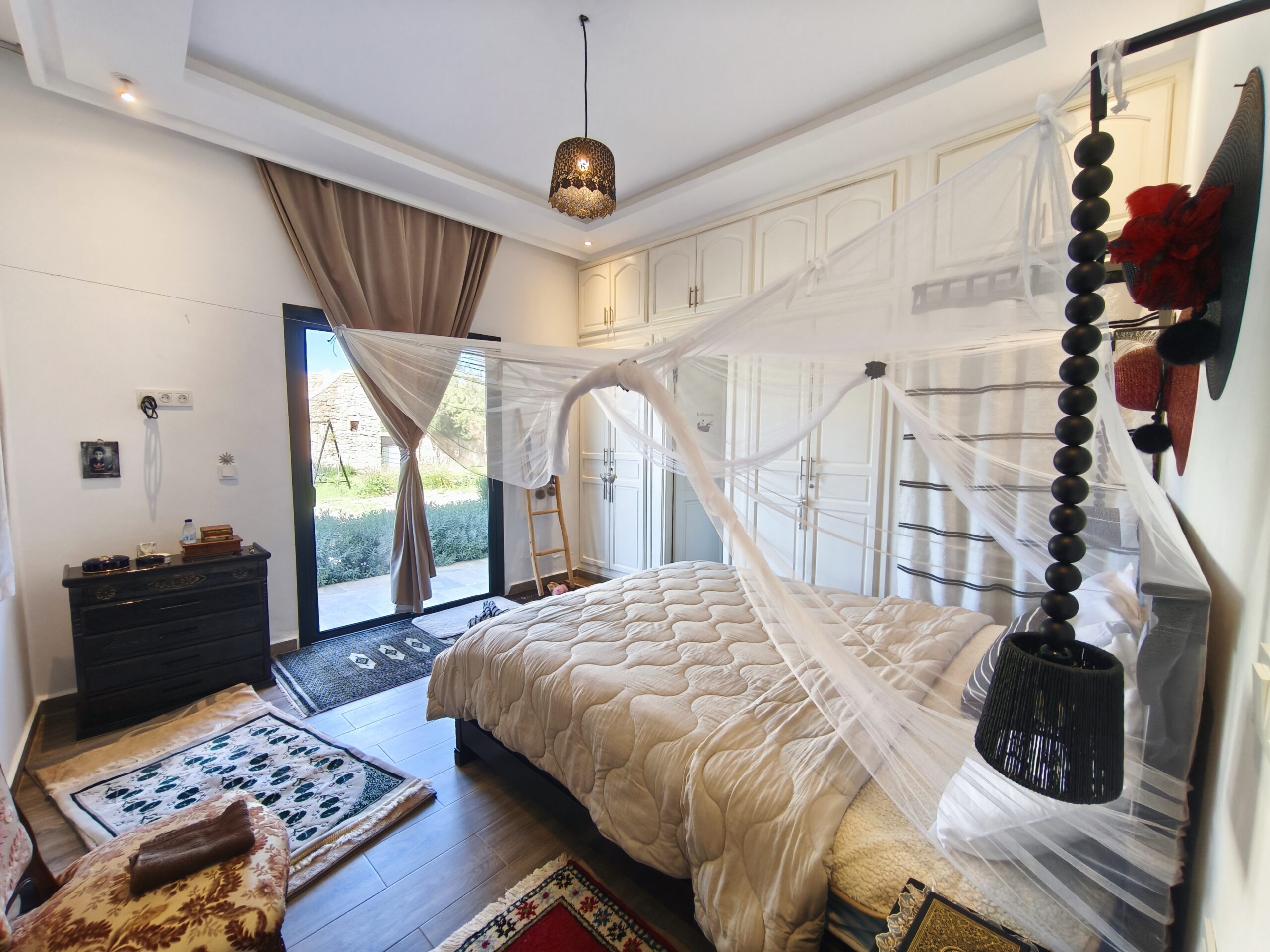 Découvrez cette jolie maison de campagne sans AVNA secteur très prisé d’Ida Ougourd. A seulement 12 km du centre ville d’Essaouira, 5 km de Ghazoua, 20mn de la plage de Sidi Kaouki. Cette propriété est située au coeur de la forêt d’arganier et possède une belle vue dégagée à l’horizon. Elle est idéale pour sa proximité avec le centre ville tout en étant un peu reculée dans la campagne.